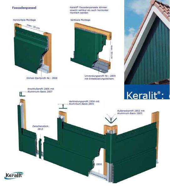Fassadensysteme Keralit Paneele - für waagerechte ,diagonale und senkrechte Verlegung geeignet