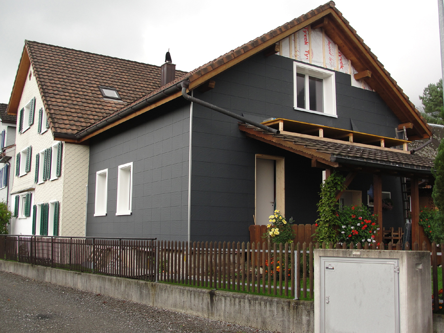 Fassadensysteme Zierer Kunstschiefer - Verlegung auch mit Wärmedämmung möglich